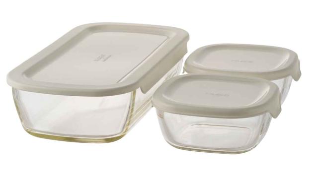 色と匂いがつきにくい耐熱ガラス製角型コンテナ 3個入り