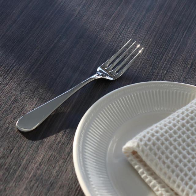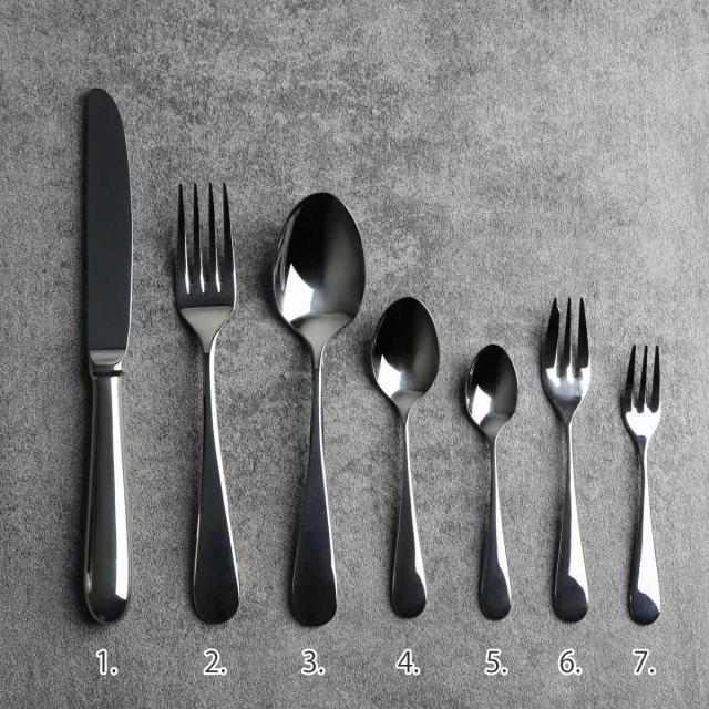 食卓でよく使用されるサイズのデザートフォークです。肉料理や魚料理、パスタなどメイン料理で使用するのに最適です。また、パンケーキなどのデザートで使用することもできます。