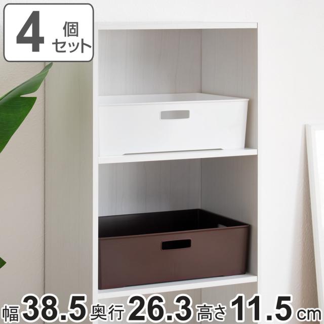 収納ボックス 収納ケース キーパーボックスワイド 浅型 4個セット ( 幅38.5×奥行26.3×高さ11.5cm カラーボックス インナーボックス 収納 日本製 持ち手 プラスチック 積み重ね 小物収納 ボックス ケース 小物入れ キッチン )