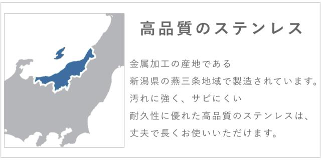 | 材質 | 本体:ステンレス鋼(ブラックのみポリエステル樹脂粉体塗装) クッションゴム:合成ゴム |