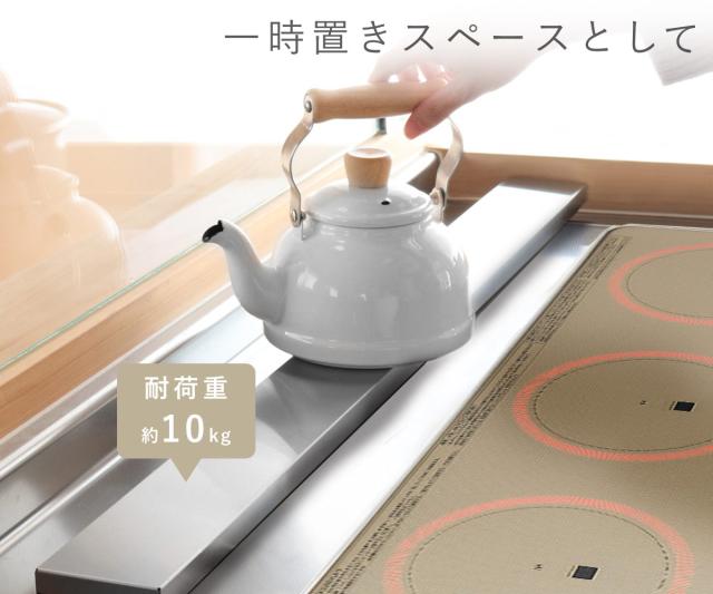 調理中の置き場に困る鍋などの一時置きスペースとしても使えます。今まで使わなかったコンロ周りのスペースを有効活用して、調味料やオイルポットなども置けるので便利です。