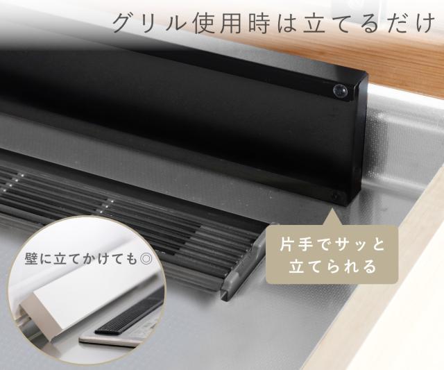 汚れやすく掃除が面倒なグリルの排気口部分に置くだけで、調理中に飛び散る油やホコリからしっかりガードしてくれる排気口カバーです。炒め物の時に飛びがちな小さな野菜の破片も隙間をなくした排気口カバーを置くことでグリルへの侵入を防ぎます。IHにもガスコンロにも対応しています。