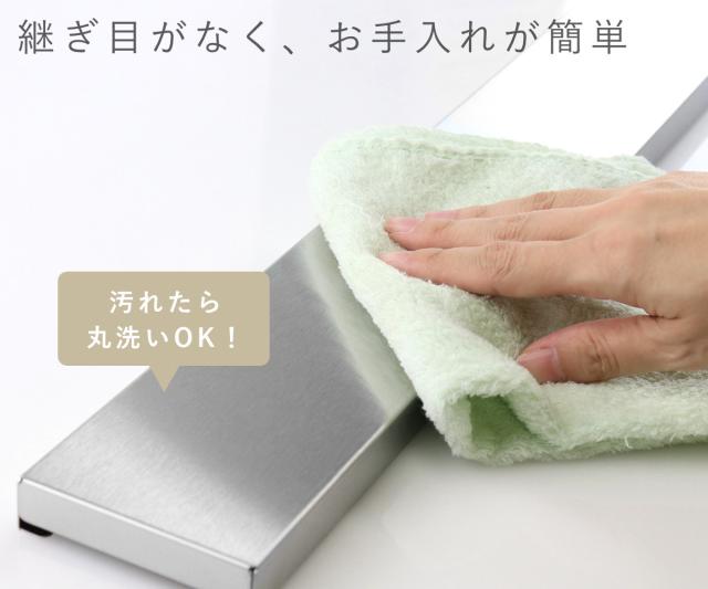伸縮しない一枚板のステンレスで継ぎ目がないので、サッと拭くだけで簡単にお手入れができます。汚れがひどいときは水で丸洗いもできます。