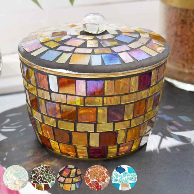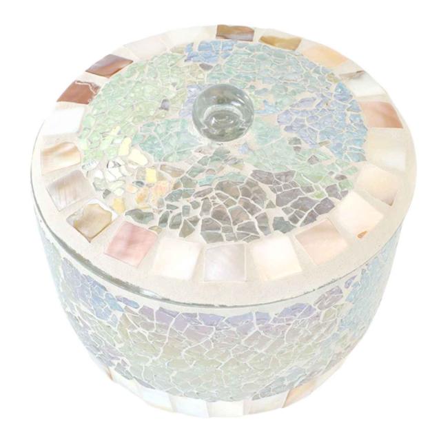 小物入れ 洗面所 モザイク 蓋つきボックス ( 小物 収納 コットン ケース コスメ 丸 容器 ふた付 モザイクガラス ハンドメイド 洗面用品 フタ )