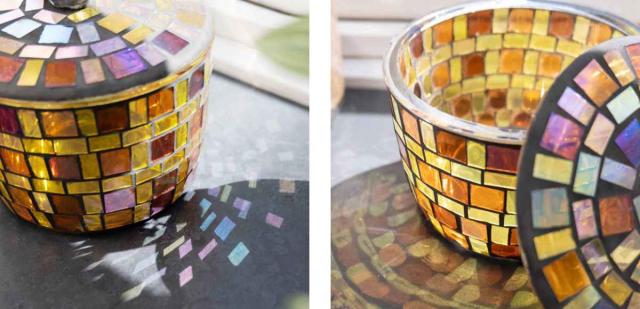 ガラス素材のモザイク蓋つきボックス