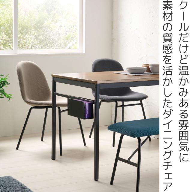 無骨な素材を使ったインダストリアルデザインと暖かみのある素材が調和したダイニングチェアです。無駄のないシャープなスチールフレームに表情のあるコーデュロイ生地の組み合わせが、それぞれの素材の質感を活かし、クールだけどどこか暖かみのある雰囲気にしてくれます。