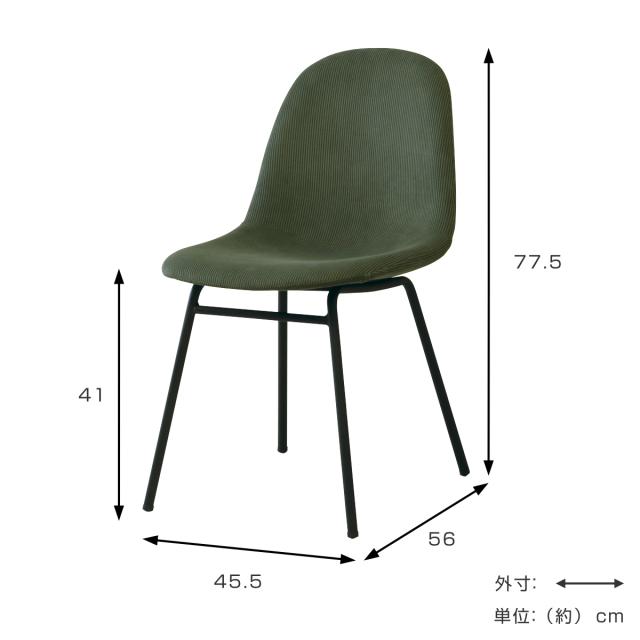 ダイニングチェア 座面高41cm コーデュロイ ( 椅子 いす チェア 肘なし リビングチェア シェル型 スチール脚 ファブリック おしゃれ 北欧風 モダン )