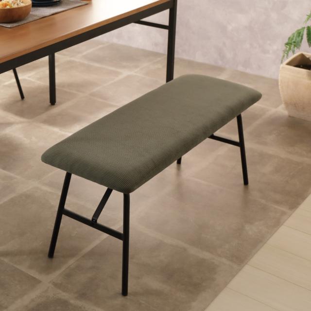 無骨な素材を使ったインダストリアルデザインと暖かみのある素材が調和したダイニングベンチです。無駄のないシャープなスチールフレームに表情のあるコーデュロイ生地の組み合わせが、それぞれの素材の質感を活かし、クールだけどどこか暖かみのある雰囲気にしてくれます。