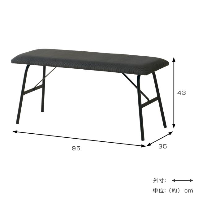 ダイニング ベンチ 幅95cm 2人掛け コーデュロイ ( 長椅子 ダイニングチェア 椅子 いす ベンチチェア リビング チェア スチール脚 ファブリック おしゃれ 北欧風 モダン )