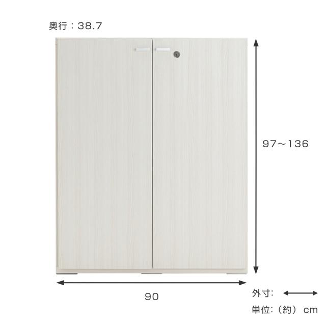 壁面収納 高さオーダー リビングシェルフ 鍵付扉 日本製 幅90cm 高さ97-136cm ( オーダー ラック サイズオーダー 棚 シェルフ 収納 完成品 オーダー家具 国内生産 リビング オープンラック 家具 可動棚 鍵付 )