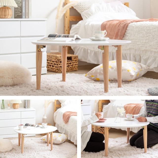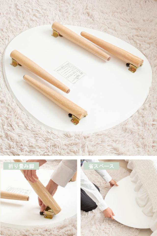 ローテーブル 幅75cm 折りたたみ 木製 天然木 ( リビングテーブル センターテーブル 楕円 丸 完成品 白 北欧風 ナチュラル おしゃれ )