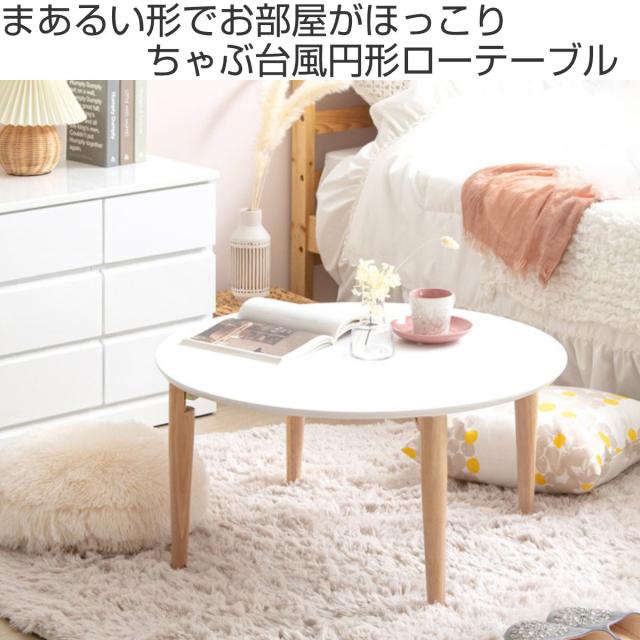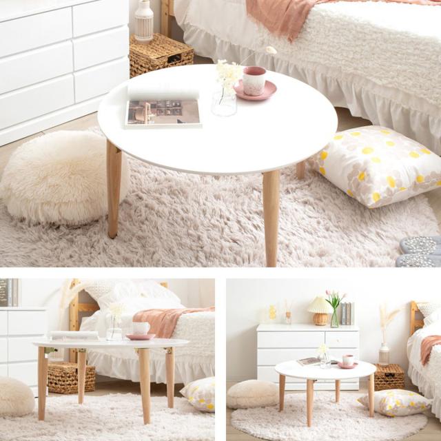 ローテーブル 幅75cm 折りたたみ 丸 木製 天然木 ( リビングテーブル センターテーブル 円形 丸テーブル 完成品 白 北欧風 ナチュラル おしゃれ )