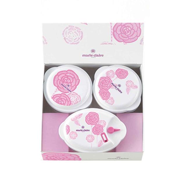 ●マリ・クレールのローズブルーミング電子レンジ容器3個セット(小判型310ml×1個、丸型270ml×2個)です。