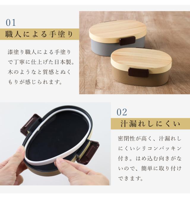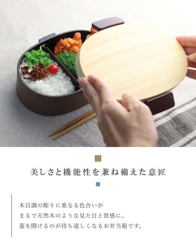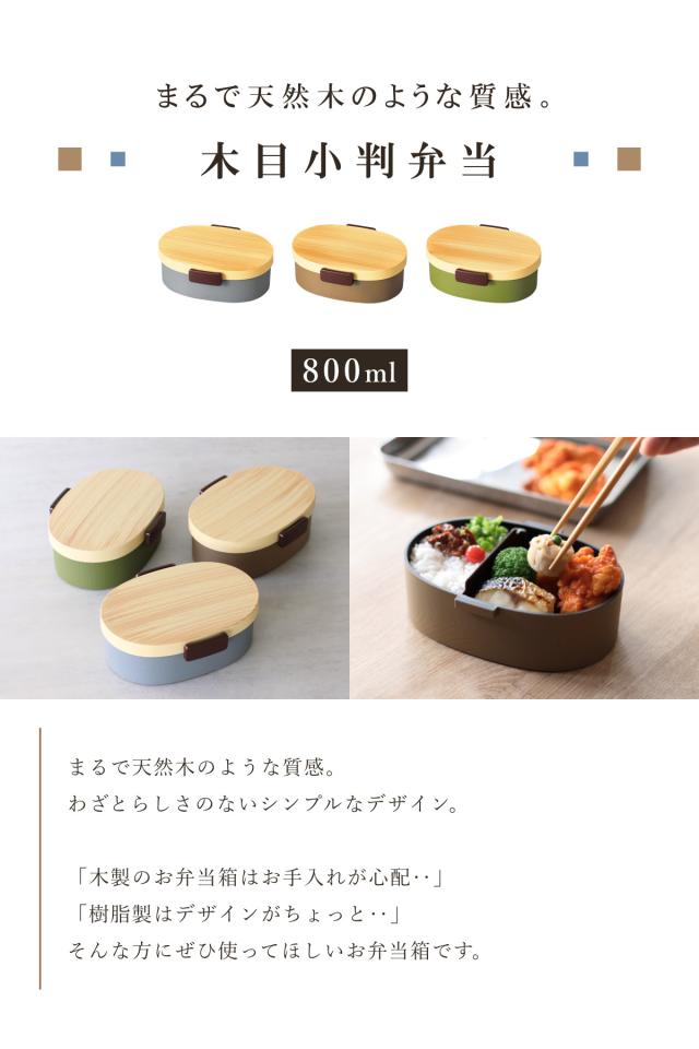 弁当箱 1段 800ml 木目小判弁当 大 タイト式 ツートーン ( お弁当箱 ランチボックス 一段 レンジ対応 食洗機対応 弁当箱 1段)