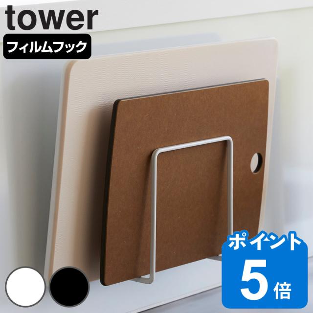 tower 山崎実業 フィルムフックまな板ホルダー タワー ( タワーシリーズ まな板スタンド まな板ラック まな板立て 吸着 乾燥 2枚収納 tower 山崎実業 キッチン 山崎実業 tower キッチン)