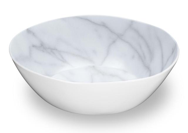 軽くて丈夫、割れにくくてお手入れもしやすい「メラミン」シリーズのテーブルウェアです。シンプルでスタイリッシュな大理石風のデザインが食卓の雰囲気をグッと引き立てます。サーバーボウル31cmは、たっぷりのサラダや大皿料理の盛り付けにぴったりなラージサイズです。サラダやパスタにソースを和えるなど、調理の仕上げにも使えてそのまま食卓に出せます。