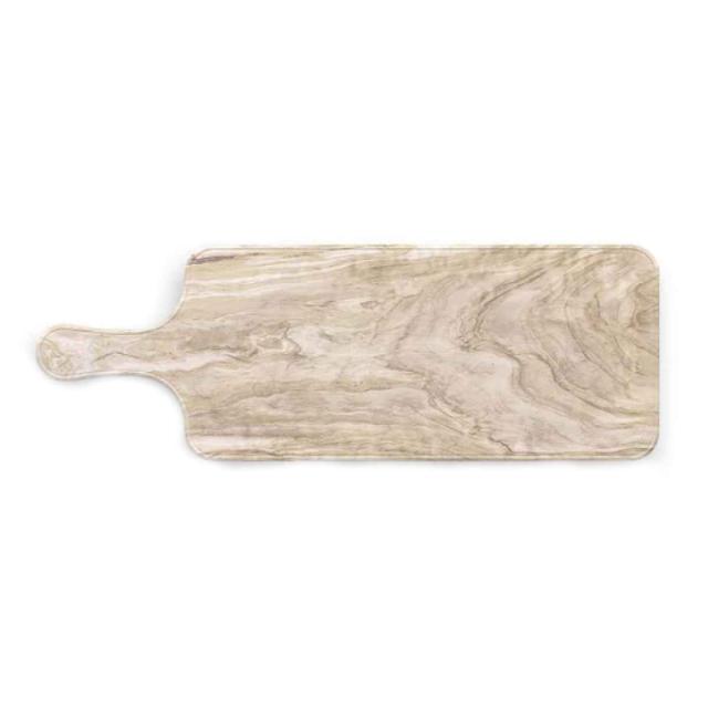 木目調で落ち着いたデザインのサービングトレーです。メラミン樹脂製で軽くて割れにくいのも嬉しいポイント。前菜やピンチョスを並べたり、おつまみを盛り付けるのにちょうどいいサイズ感です。