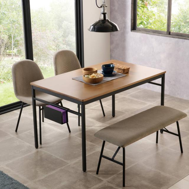 明るめのナチュラルな雰囲気に、引き締まった黒いフレームのインダストリアルデザインが魅力の「ノアル」シリーズ。別売りのチェアやベンチを合わせることで、メリハリが聞いたアクセントのある空間に仕上がります。