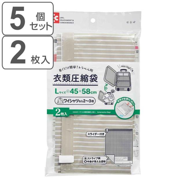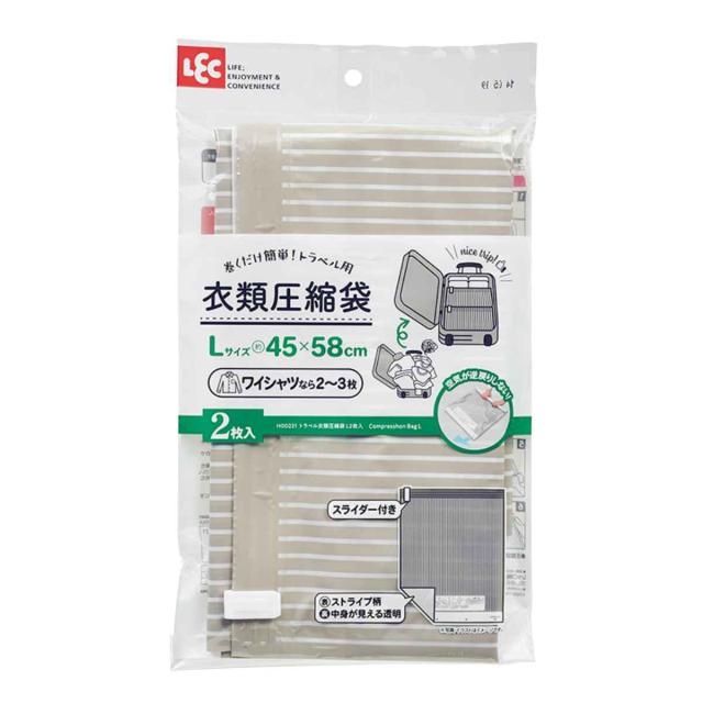 圧縮袋 トラベル衣類圧縮袋 L 45×58cm 2枚入 ( 衣類圧縮袋 衣類 収納 収納袋 旅行 旅行用 押すだけ 巻くだけ 簡単 スライダー付き 掃除機不要 Yシャツ Tシャツ 下着 パッキング 衣替え 衣類収納 袋 出張 非常用 )