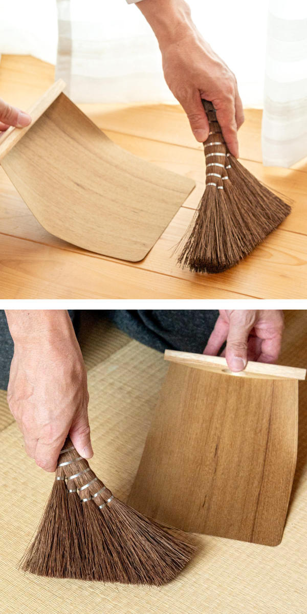 棕櫚の箒は柔らかく適度なコシがあるため、撫でるようにやさしく掃くことができます。力を入れずにゴミを集められるためホコリを舞い上げません。棕櫚の細かい繊維が表面のゴミだけでなく、隙間に入り込んだホコリや毛なども綺麗にかき出して絡め取ってくれます。