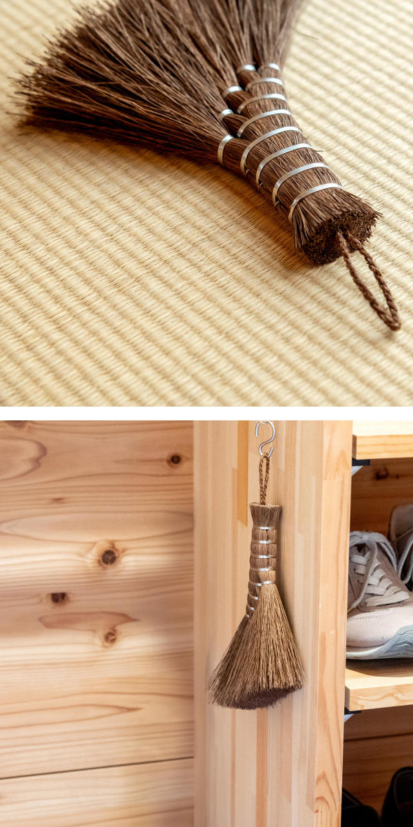 棕櫚は水にも強く耐久性があり、丈夫で長持ちする素材です。最初はフローリングや畳などのお座敷用として、摩耗してきたら玄関などに、最後には庭箒としてお使いいただけます。10年、20年と暮らしに寄り添う掃除道具です。