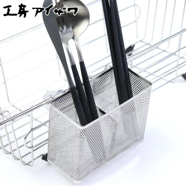 工房アイザワ ながしこもの はし立て 長方形 仕切・吸盤付き ( 吸盤付き aizawa 箸立て カトラリーポケット 日本製 ステンレス アイザワ 水切り 吸盤 水切りラック 箸入れ はし入れ カトラリー )