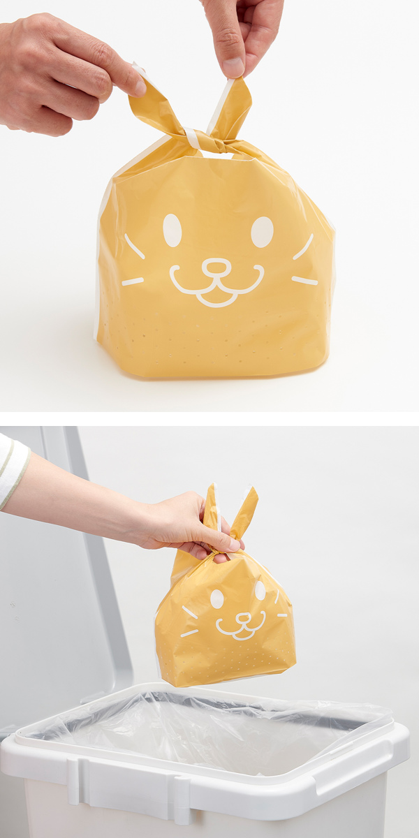 可愛らしいウサギがモチーフのデザインとなっています。ウサギのプリントが全面に描かれていることで、中が見えにくいです。また、耳部分が便利な持ち手となって結べるようになっています。口を結ぶことで、中身がゴミ袋内に散乱しにくいです。