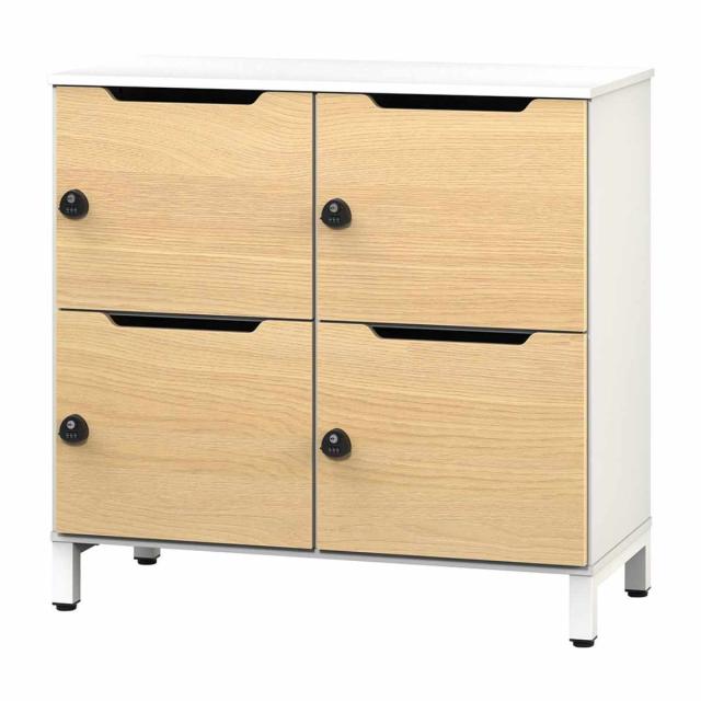 パーソナルロッカー 2列2段 ダイヤル錠付 幅100cm ( 法人限定 ロッカー オフィス 収納 家具 鍵付き 棚 BOX 扉付き オフィス家具 パーソナル 更衣室 ホワイトオーク ダイヤルロック 三桁 )
