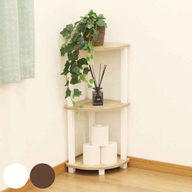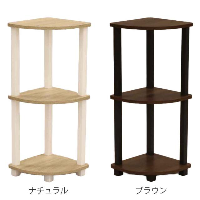コーナーラック 3段 オープンタイプ 簡単組立て 奥行き約30cm ( 収納ラック 収納 収納棚 飾り棚 ラック コーナー 花台 工具不要 オープンラック コーナー用 コーナー置き シンプル ブラウン )