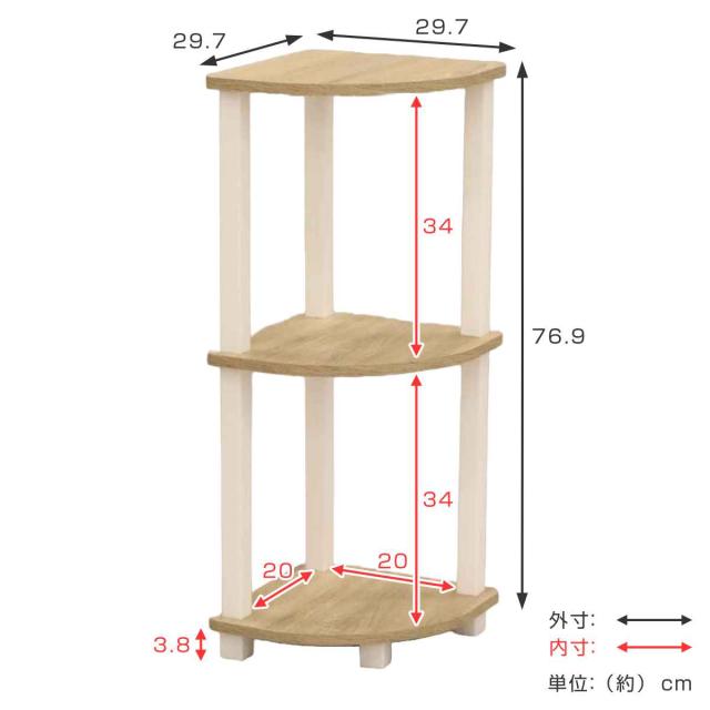 シンプルデザイン コーナーラック3段