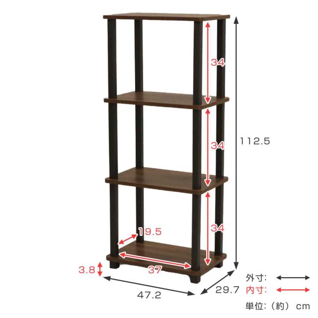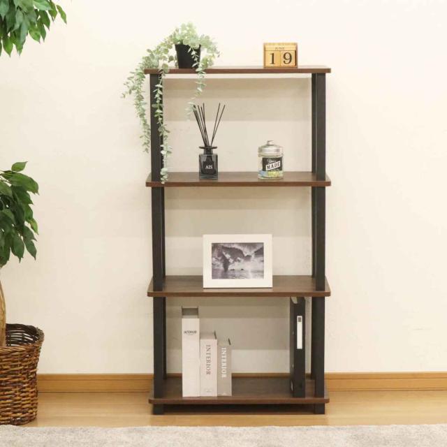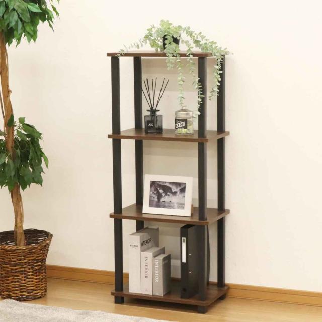 オープンラック スリム幅 4段 簡単組立て 約幅47cm ( 収納ラック 収納 収納棚 飾り棚 ラック 四段 工具不要 ディスプレイ 本棚 シンプル ブラウン )