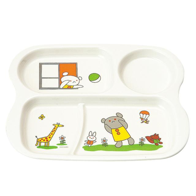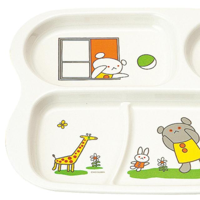 ランチプレート 25.5cm レクタングル こぐまちゃん メラミン ( 食洗器対応 お皿 プレート 仕切り付き メラミン食器 皿 子供用食器 樹脂製 軽い 割れにくい 耐久性 キャラクター 4つ仕切り 可愛い 子ども )