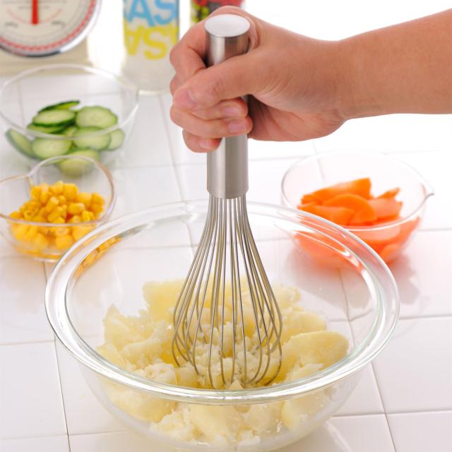 線材を24本使用して造った、泡立ちの早い本格仕様の泡だて器です。たっぷりと空気を取り込み、手早くきめ細かい泡立てを可能にします。