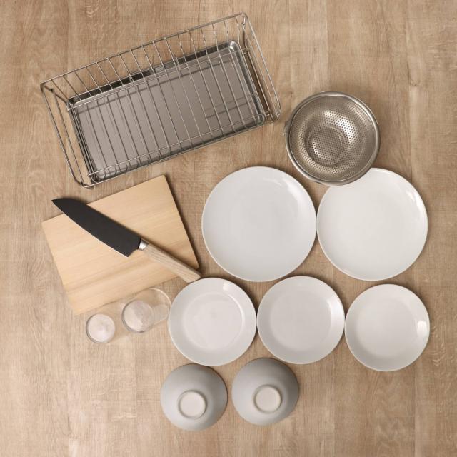 プレートも深さのあるボウルも立てて置けるので無駄なスペースを作らず一度でたくさんの量を収納できます。立てて置くことで水切れが良く乾きが早くなります。
