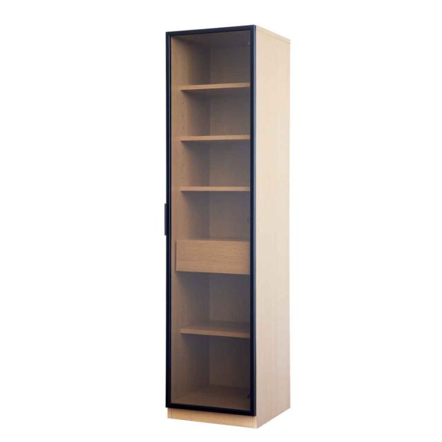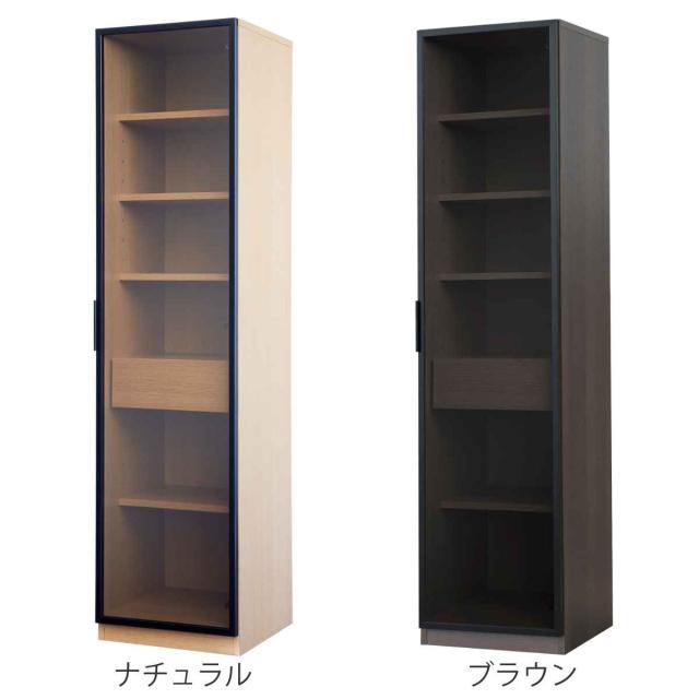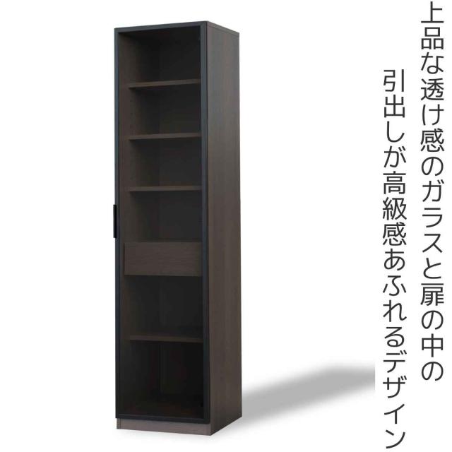 ガラスキャビネット ハイタイプ リビング収納 LOCKO 日本製 約幅45cm ( 開梱設置 キャビネット 収納 家具 リビング 完成品 ディスプレイ 飾り棚 棚 ラック 引き出し 可動棚 シンプル ナチュラル ブラウン )
