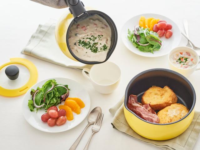 マルチポットとマルチパンがセットになっているので、2つのアイテムで同時調理も可能です。忙しい朝食や疲れてすぐに食べたい夕食づくりもこの2つさえあれば、手早く調理ができます。