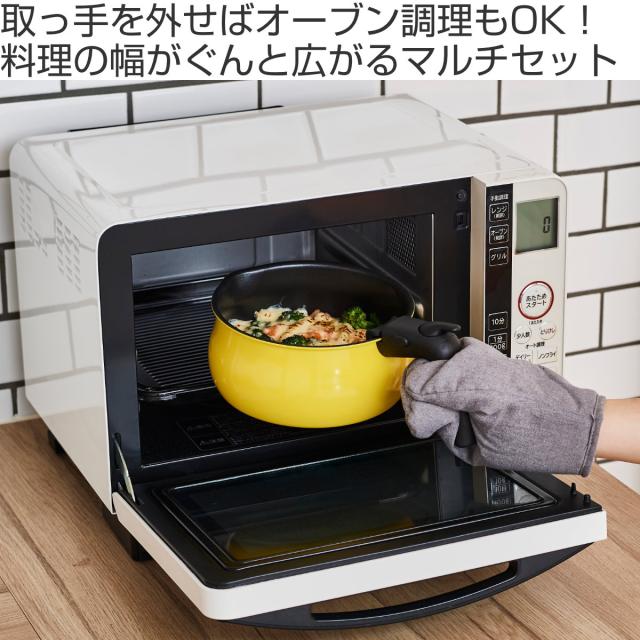 マルチポット M 4点セット IH対応 Tomay 蓋付き 着脱ハンドル付き ( ガス火対応 オーブン対応 片手鍋 マルチパン セット 取っ手が取れる 万能鍋 マルチセット ハンドル着脱式 ガラス蓋付き アルミ製 ふっ素加工 軽い )