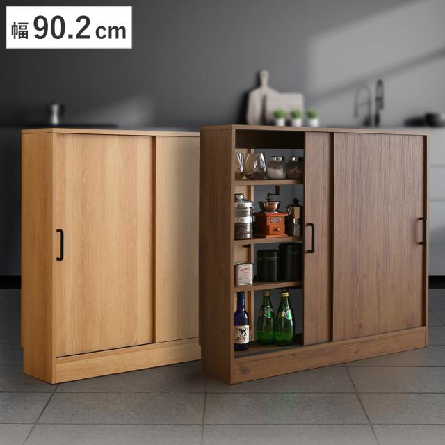 カウンター下収納 幅90.2cm 引き戸タイプ ヴィンテージ調 ( カウンター下 棚 収納 家具 奥行スリム キッチン カウンター ラック キッチン収納 可動棚 窓下 引き戸 ウォールナット シャビーオーク )