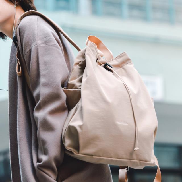 メイン収納が巾着式で開閉がしやすい、容量約6Lのバッグです。リュックなので自転車やバイクに乗る際も使いやすく、ちょっとした旅行にも便利なサイズ感です。