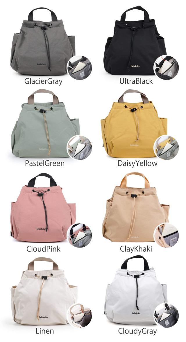 | 種類 | GlacierGray、UltraBlack、PastelGreen、DaisyYellow、CloudPink、ClayKhaki、Linen、CloudyGray、BrightOlive、MistyLilac、PaleTeal |