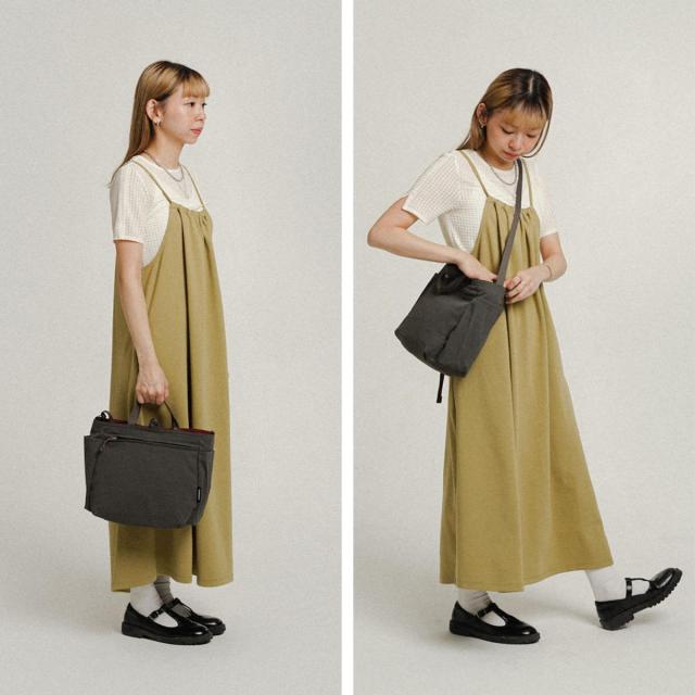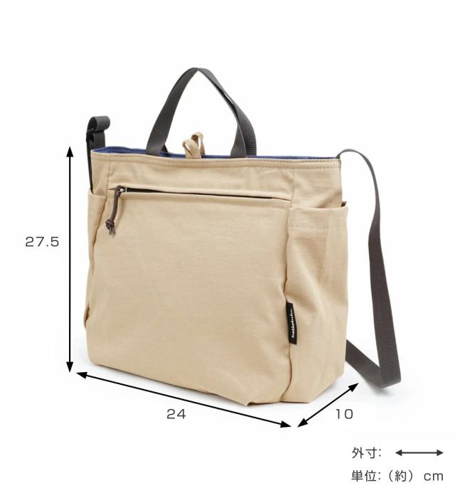 手持ちでも肩掛けでも使える2way仕様です。約幅24×奥行10×高さ27.5cmと、普段使いに最適なサイズ感です。