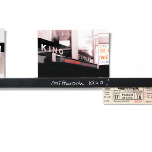 レールの黒い面には、付属の白ペンで文字を書くことができます。日付や思い出の場所などのメモを残せます。