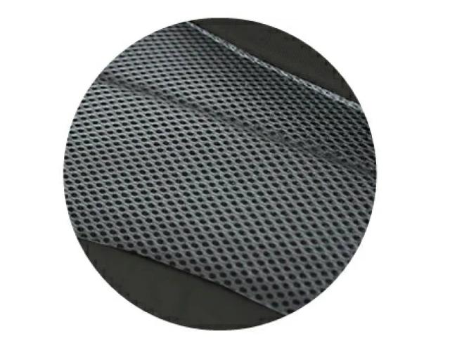 リュックの背面部分は通気性の良いメッシュ素材で1年中快適にお使いいただけます。衝撃をやわらげるクッション加工がされています。
