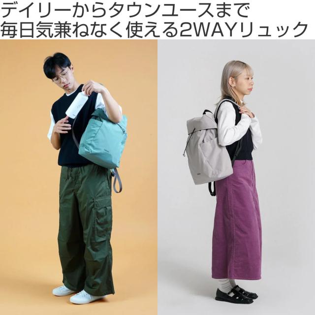 必要なものだけを入れて出かけるのに便利なサイズの2WAYリュックです。容量は約8Lで、開閉口が巾着式のため大きく開き、中身の出し入れがスムーズにできます。