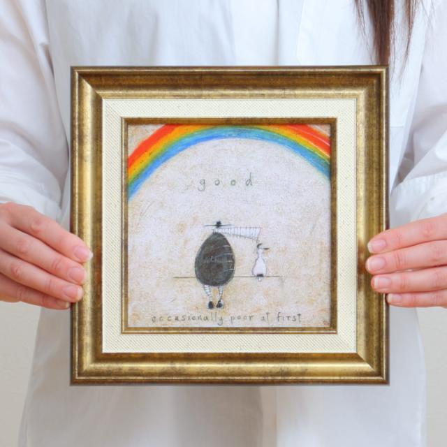 アートパネル サムトフト『ついてる日』 23.5×23.5cm ( 絵画 絵 アート インテリア 額 額入り 壁掛け 犬 動物 虹 ポスター アートフレーム アートポスター ウォールアート パネル 額付き 額縁 正方形 スクエア 壁飾り リビング )