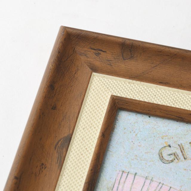 アンティーク加工の施された、木目調の樹脂製フレームです。