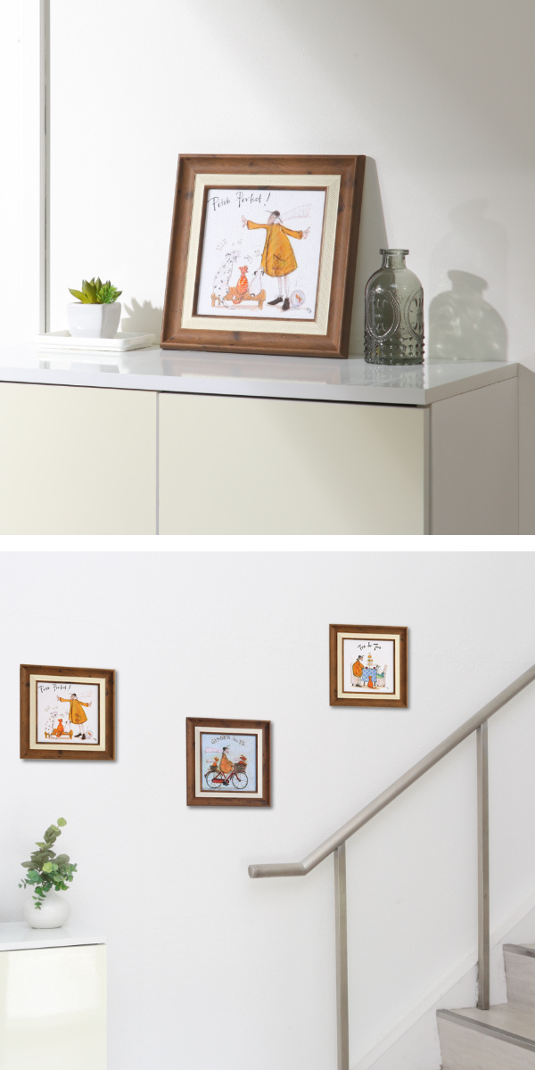 玄関や廊下など、薄暗く寂しい印象になりがちな空間にも楽しさと温もりを。階段の長い壁には、同じシリーズで数作品飾るのもおすすめです。