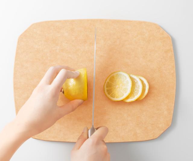 nikiiのウッドファイバーは無空気孔性にこだわり、木製や一般的なウッドファイバー素材のまな板より、水分が非常に浸透しにくくなっています。洗ってもすぐ乾くので、菌の繁殖の心配がなく、着色汚れにも強い素材です。