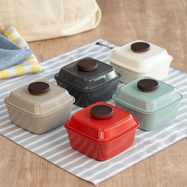 カラーが豊富でシンプルなデザインなので、世代問わずお使いいただけるお弁当箱です。鋳物鍋のような形がおしゃれで、毎日のお弁当作りやランチタイムが楽しみになりそうです。