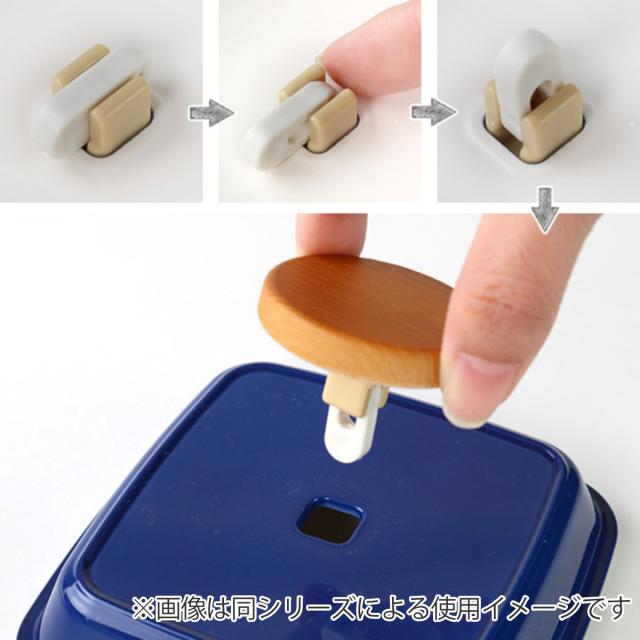 フタ裏の留め具をスライドさせてカチッと音がするまで押し込み、留め具を垂直に起こせば簡単につまみが外れます。